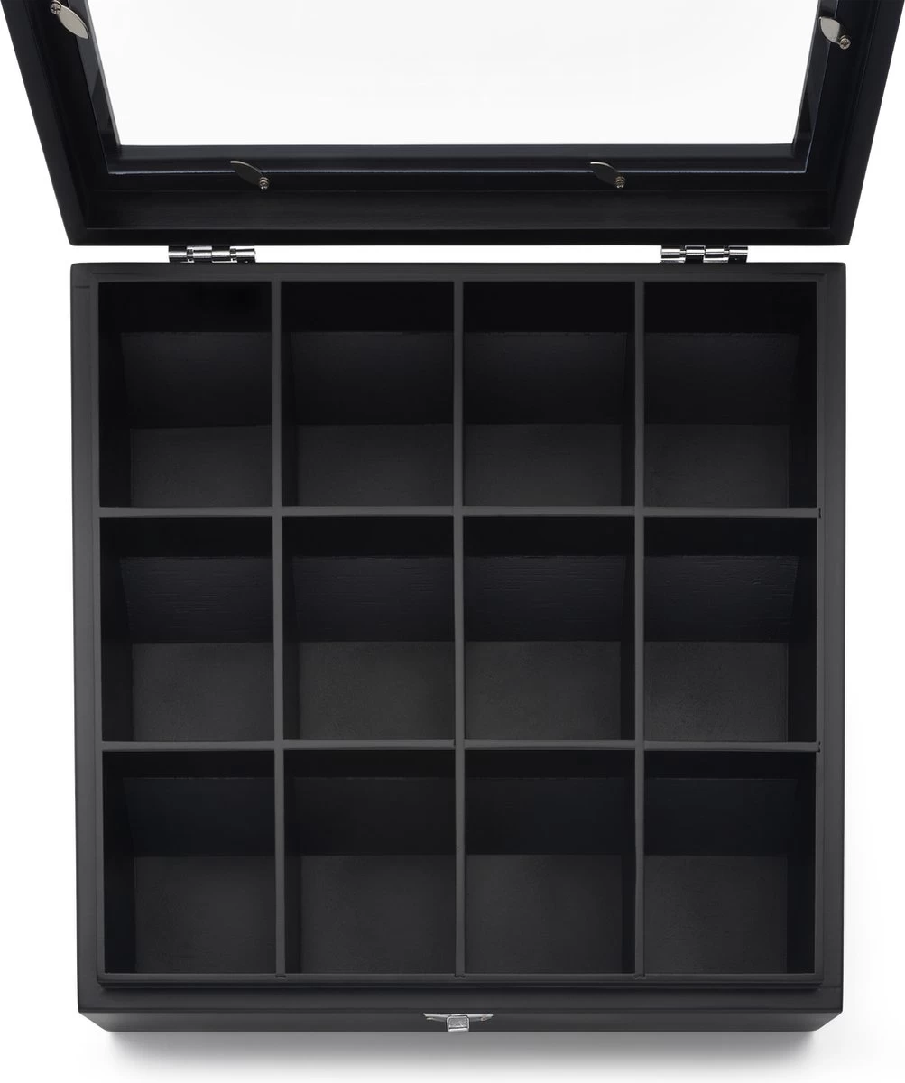 Deze fraaie 12-vaks theedoos uit de Universal collectie van Bredemeijer is voorzien een venster zodat je vanaf de buitenkant snel en gemakkelijk al kunt zien welke smaken er voorhanden zijn. De theedoos is gemaakt van zwart bamboe wat het geheel een chic uiterlijk. De serie universal van Bredemeijer bestaat uit diverse artikelen die het drinken van een kopje thee bijzonder maken. Tevens staan bij alle artikelen van Bredemeijer gebruiksvriendelijkheid, kwaliteit en design voorop.