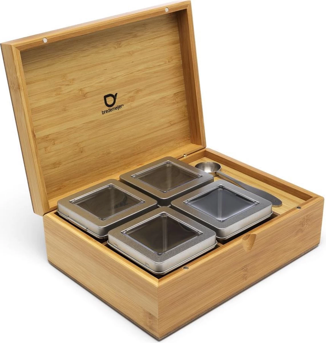 Bredemeijer – Theedoos Naturel Bamboe +4 Blikjes +lepel