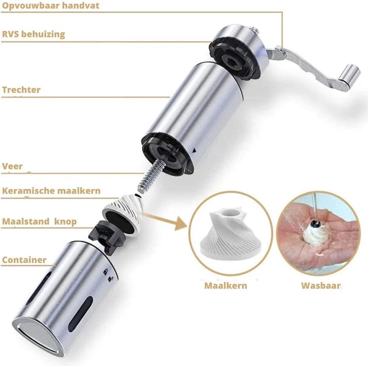 Handige eigenschappen van de Comes in Handy handmatige koffiemolen: