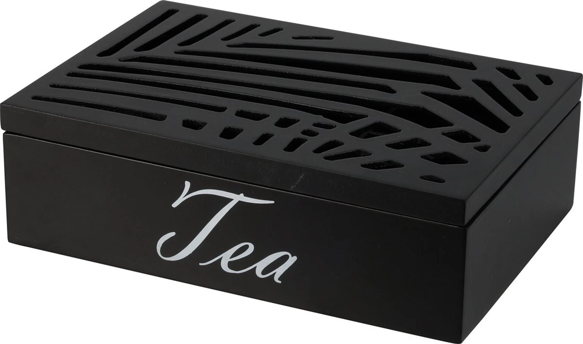 Excellent Houseware houten theedoos zwart 6-vaks. De theedoos is geschikt om theezakjes van 6,5 cm (Pickwick) rechtop neer te zetten. Materiaal: mdf/hout. Afmeting: ca. 24 x 16 x 7 cm.