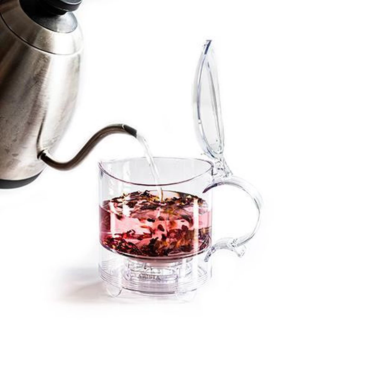 4. plaats de teamaker op je theepot of theeglas, daardoor gaat de afsluitklep open