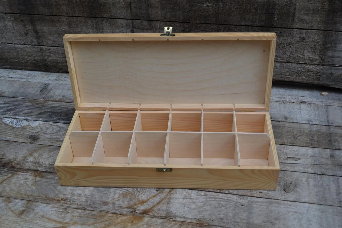 | Verpakkingsinhoud | Theekist blanco naturel 16 – vaks (4×4) incl. verpakkingsmateriaal |