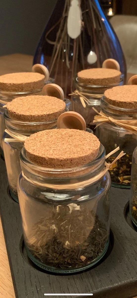 Ben jij dol op thee drinken en vind je het leuk om je thee op een leuke manier te presenteren? Dan is dit echt iets voor jou. Je kunt op deze theeplank maar liefst 6 theepotjes kwijt en deze vullen met 6 verschillende soorten thee. We leveren deze theeplank inclusief de 6 potjes met houten lepeltje. Je hoeft er alleen nog maar droge thee in te doen om een perfecte theemiddag te hebben. We maken deze theeplank met de hand van eikenlook plaatmateriaal. Elke theeplank is hierdoor uniek.